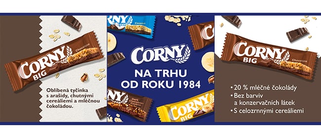 První tyčinka Corny byla uvedena na trh již v roce 1984. Od té doby je značka Corny synonymem kvality mezi cereálními tyčinkami a jedničkou v obchodech. Za úspěchem stojí pečlivý výběr ingrediencí a šetrné výrobní postupy.