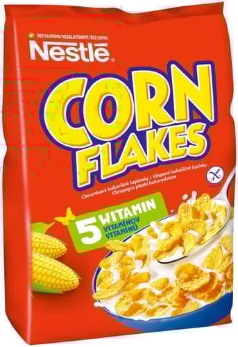 Poland,Křupavé kukuřičné lupínky. Nestlé Corn Flakes jsou bezlepkové křupavé kukuřičné lupínky s obsahem pěti vitamínů. Lupínky jsou vyrobeny z kukuřice vysoké kvality a kromě toho jsou obohaceny o vitamíny. obohaceny o vitamíny. Nestlé Corn Flakes představují snídaňovou variantu vhodnou pro celou rodinu.