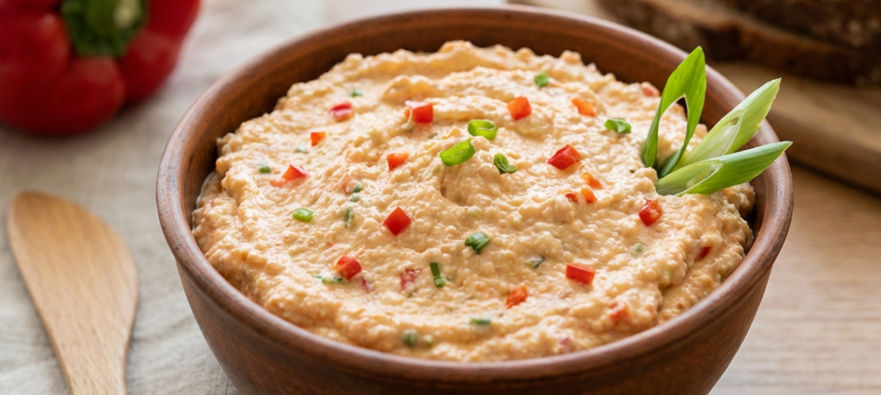 The spread also tastes great without ground paprika and bell pepper, just with spring onion. Or chives.