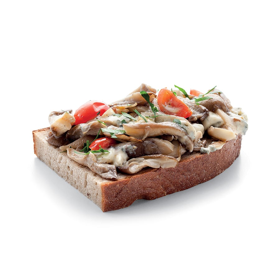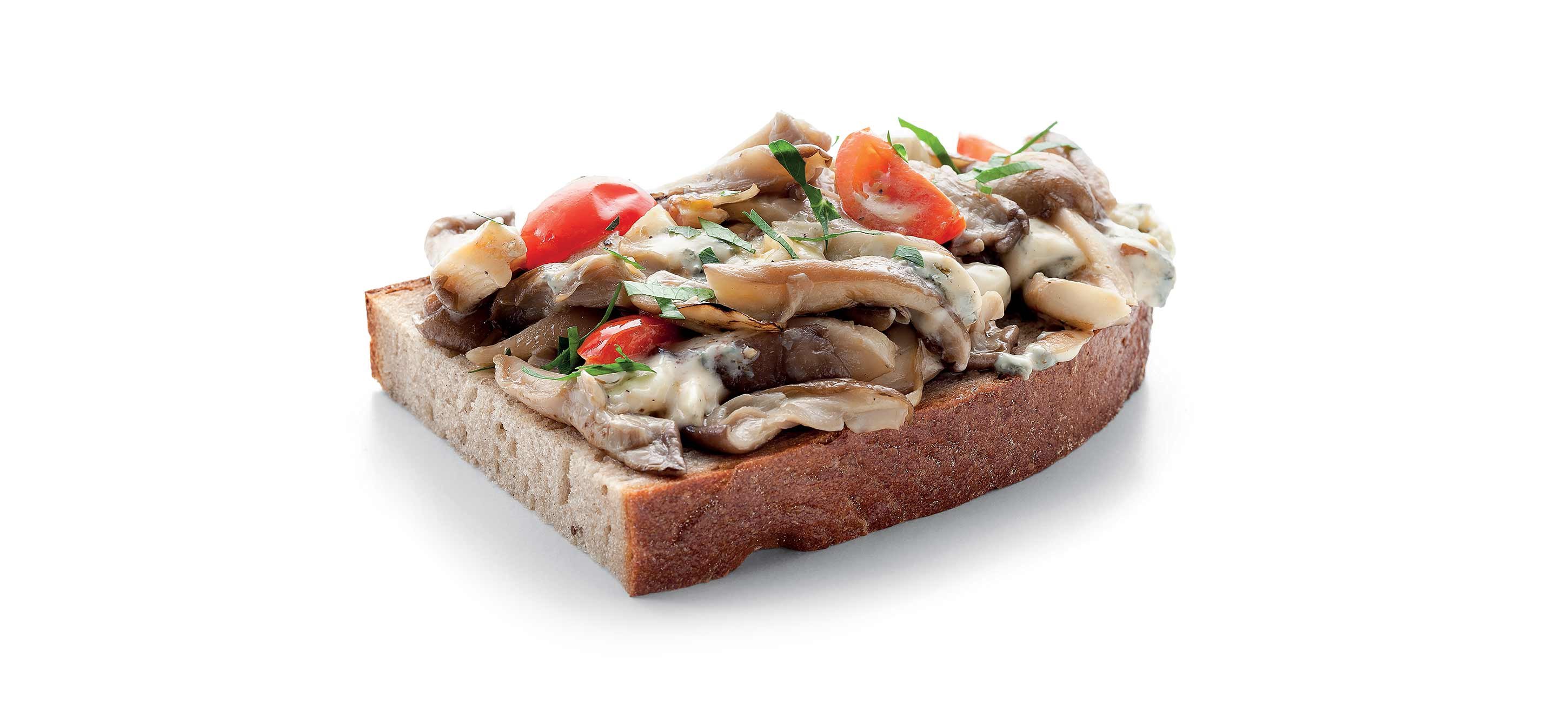Heat the oil in a pan, add the oyster mushrooms and sauté them quickly for 1 minute. Add the chopped tomatoes and mix. Add the blue cheese, mix briefly, and immediately remove from the heat. Season with salt and pepper to taste and mix. Finally, sprinkle with chopped parsley.