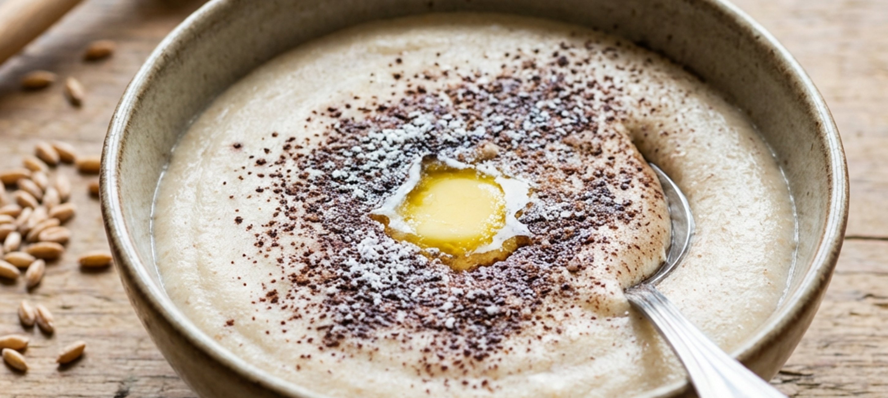 - 2Transfer the cooked porridge to a serving bowl. Then, in a separate bowl, mix cocoa with cane sugar and sprinkle the resulting mixture over the porridge in the bowl. Finally, melt the butter in a pot or saucepan over low heat, then pour it over the contents of the bowl and serve.
