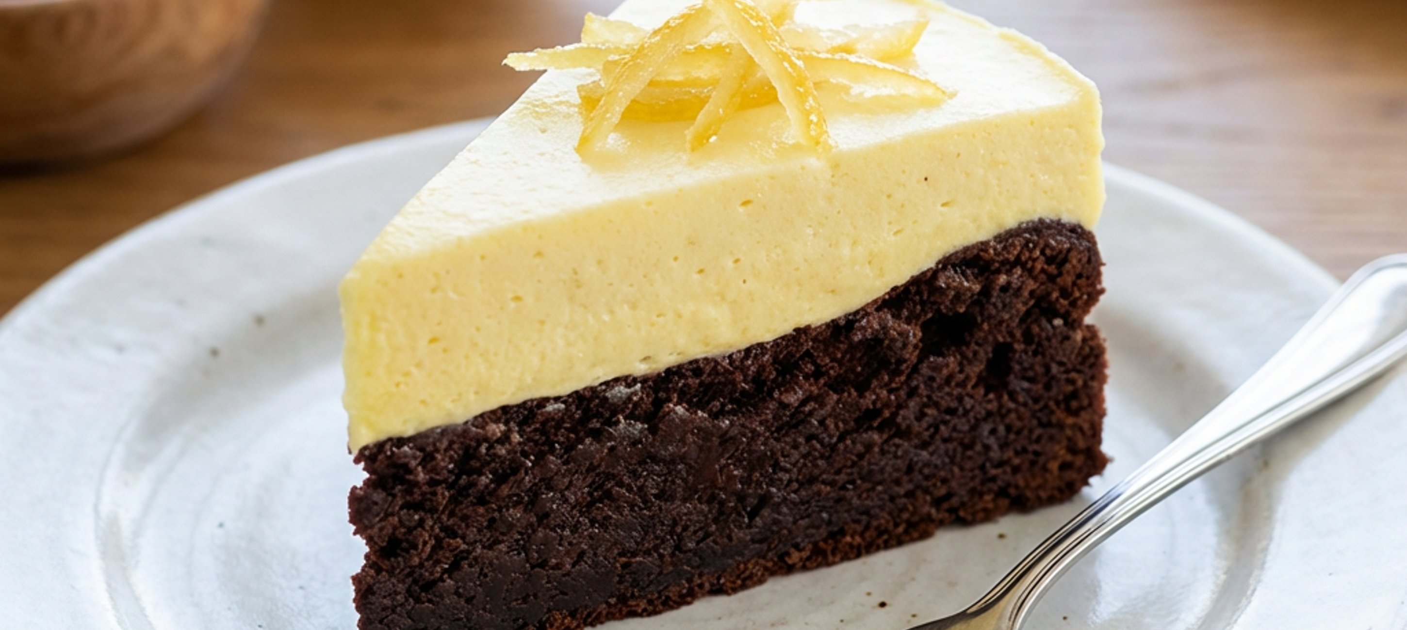 - 8Remove the cooled cake base from the cake pan and peel off the baking paper. Place the base on a serving platter and enclose it in a cake ring. Spread the lemon mousse over the base, smooth the surface, and chill in the refrigerator for several hours, or even overnight. Before serving, decorate with candied lemon zest.