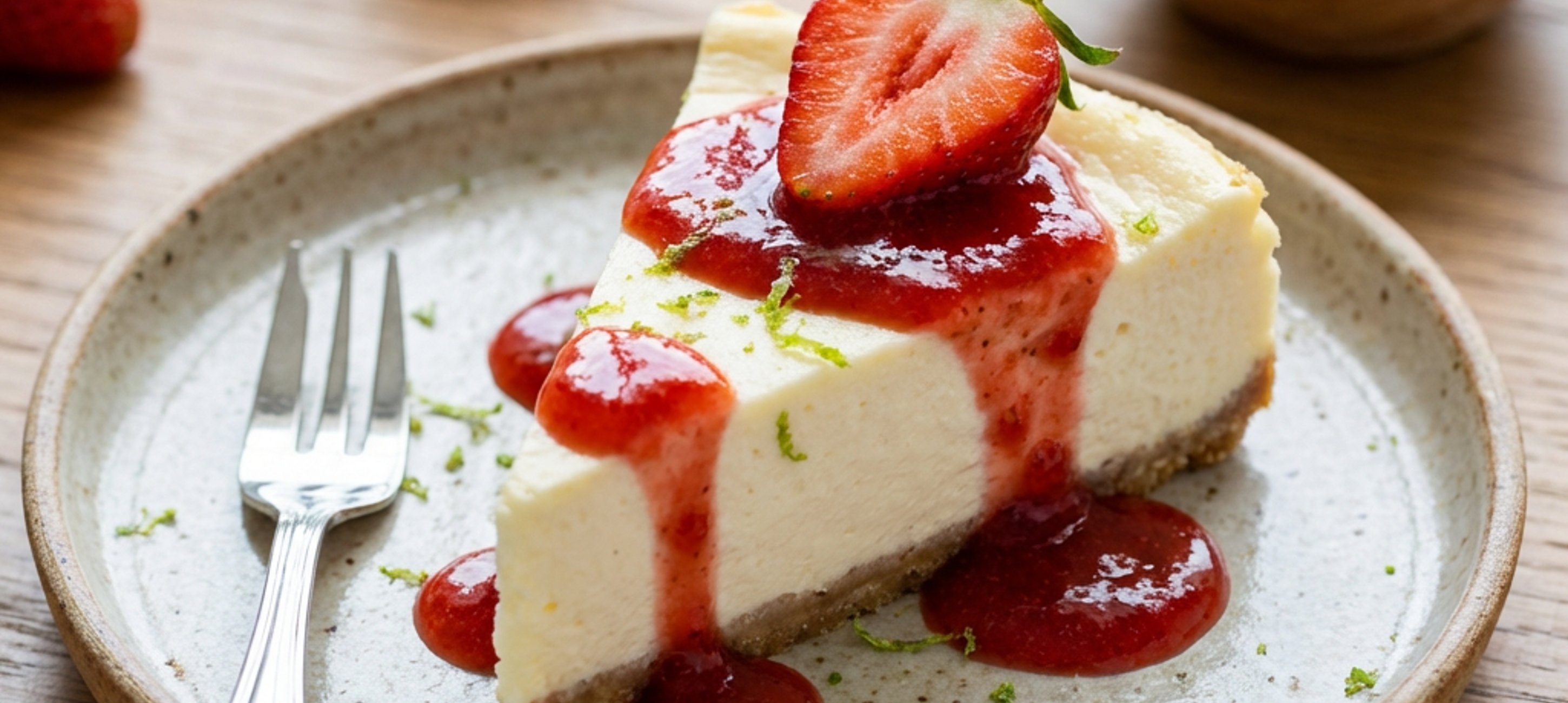 - 6After the time has elapsed, remove the chilled cheesecake from the tin, cut into individual portions, and serve.