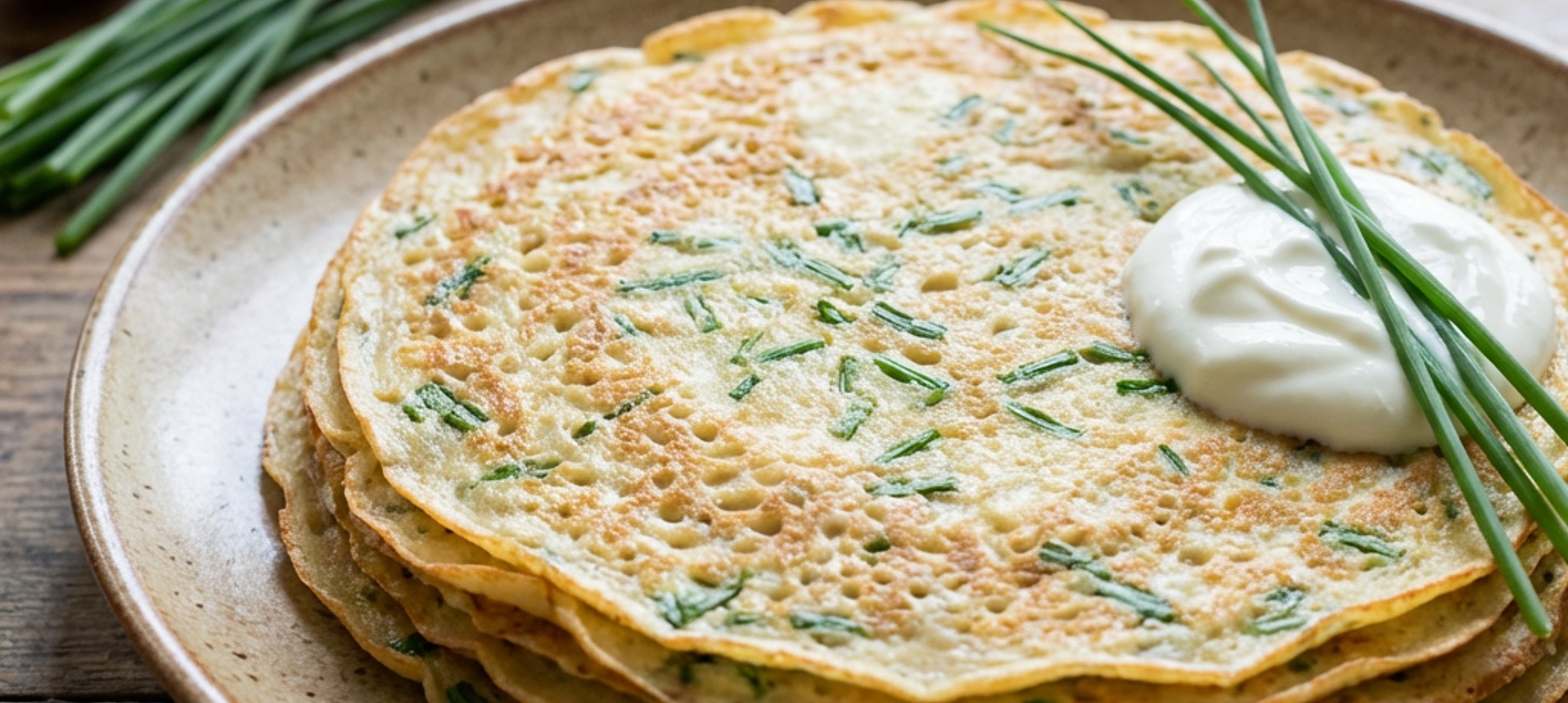 - 1Mix the flour and baking powder, then add eggs and milk. Add chopped chives and season with salt and pepper.
