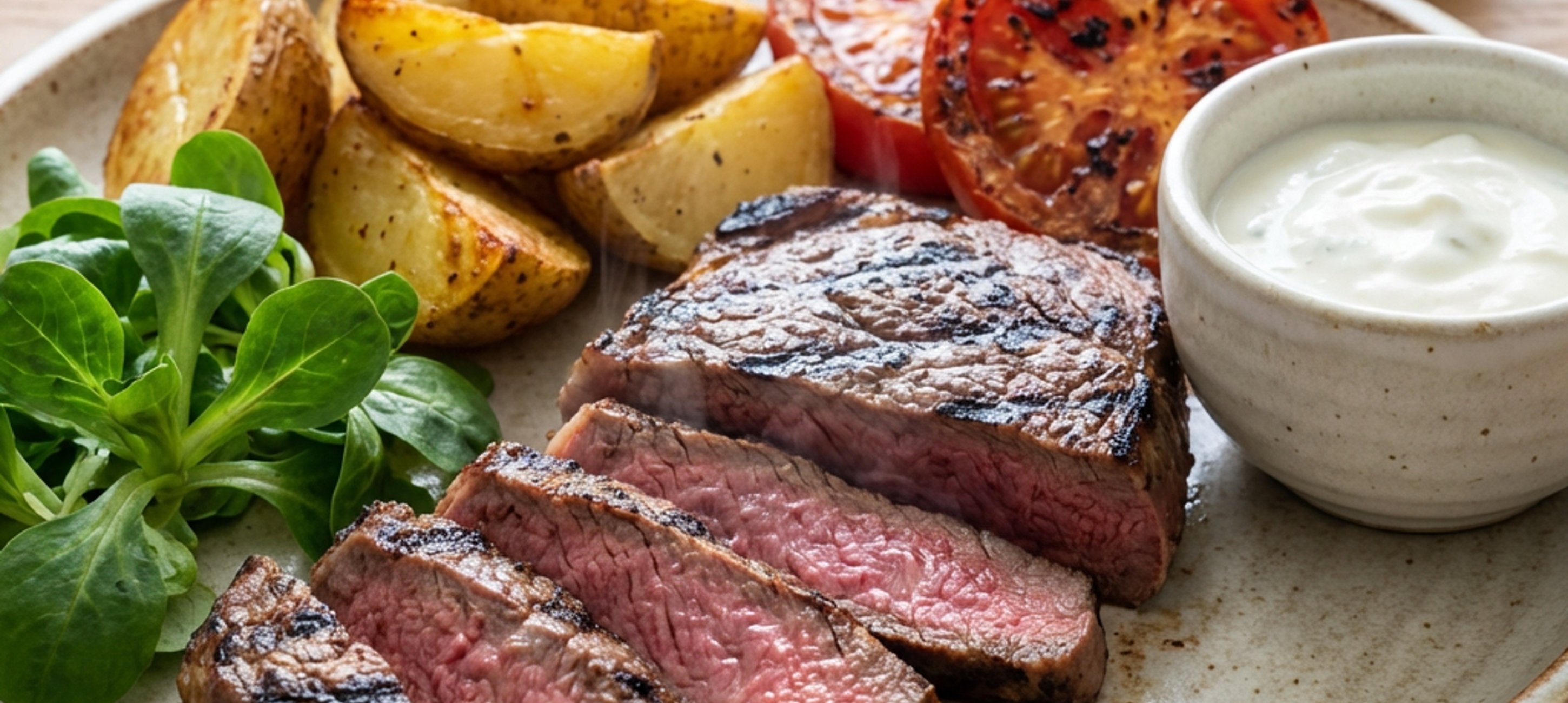 - 7Lightly season the steak with more salt and freshly ground pepper before serving.