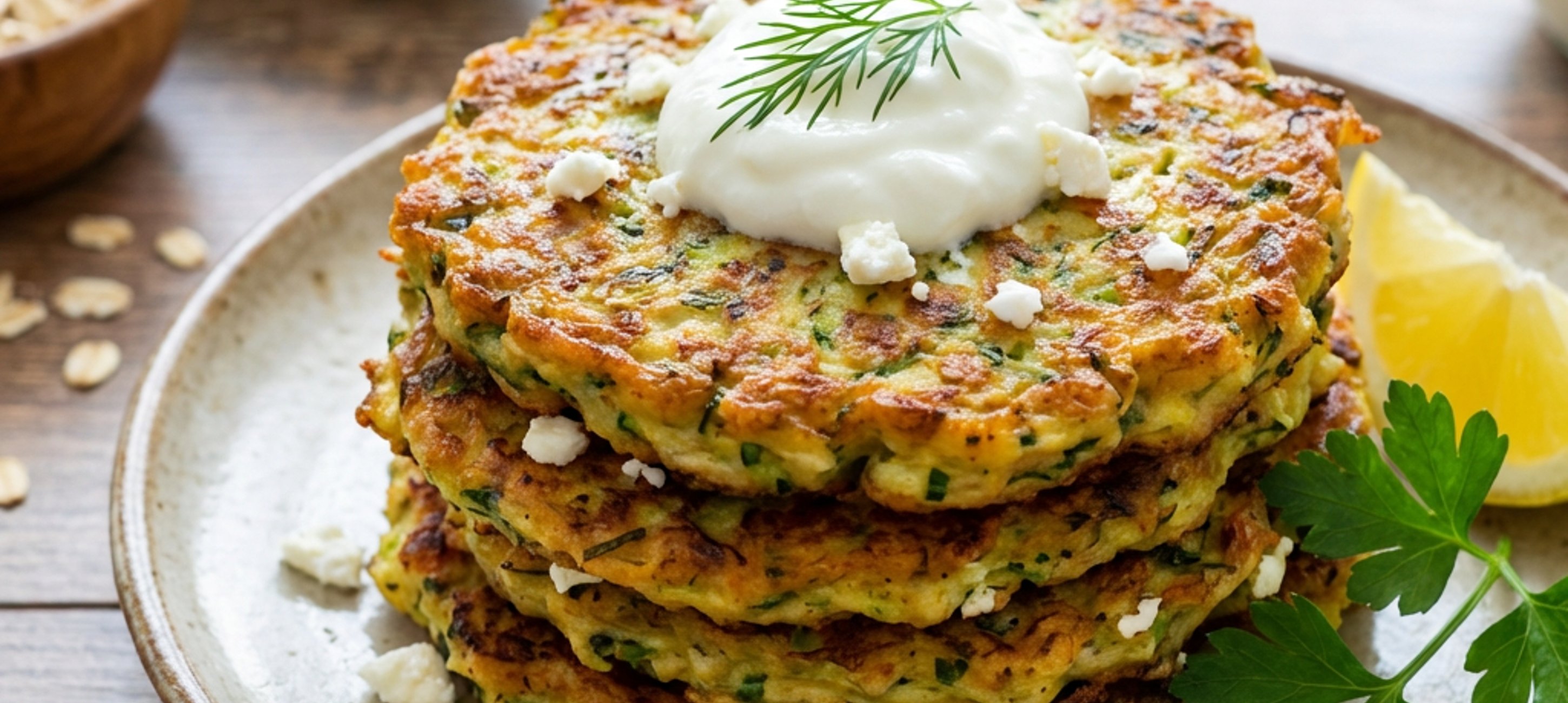 Finely grate the zucchini, place it in a sieve, salt it, and let it rest for 10–15 minutes so that the salt releases excess water. Meanwhile, peel and finely chop the onions, and finely chop the dill and parsley. Once the zucchini has released its excess water, squeeze it out.