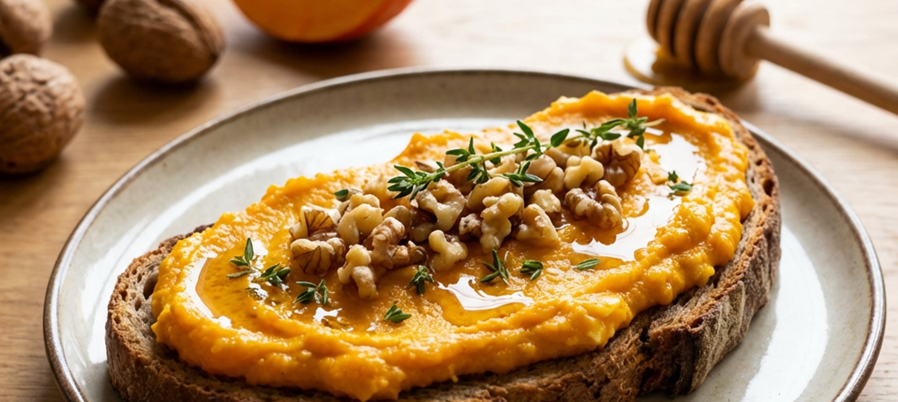 Spread the dip on a slice of bread, garnish with chopped nuts, fresh thyme, drizzle with honey, and season with coarse salt or fleur de sel.