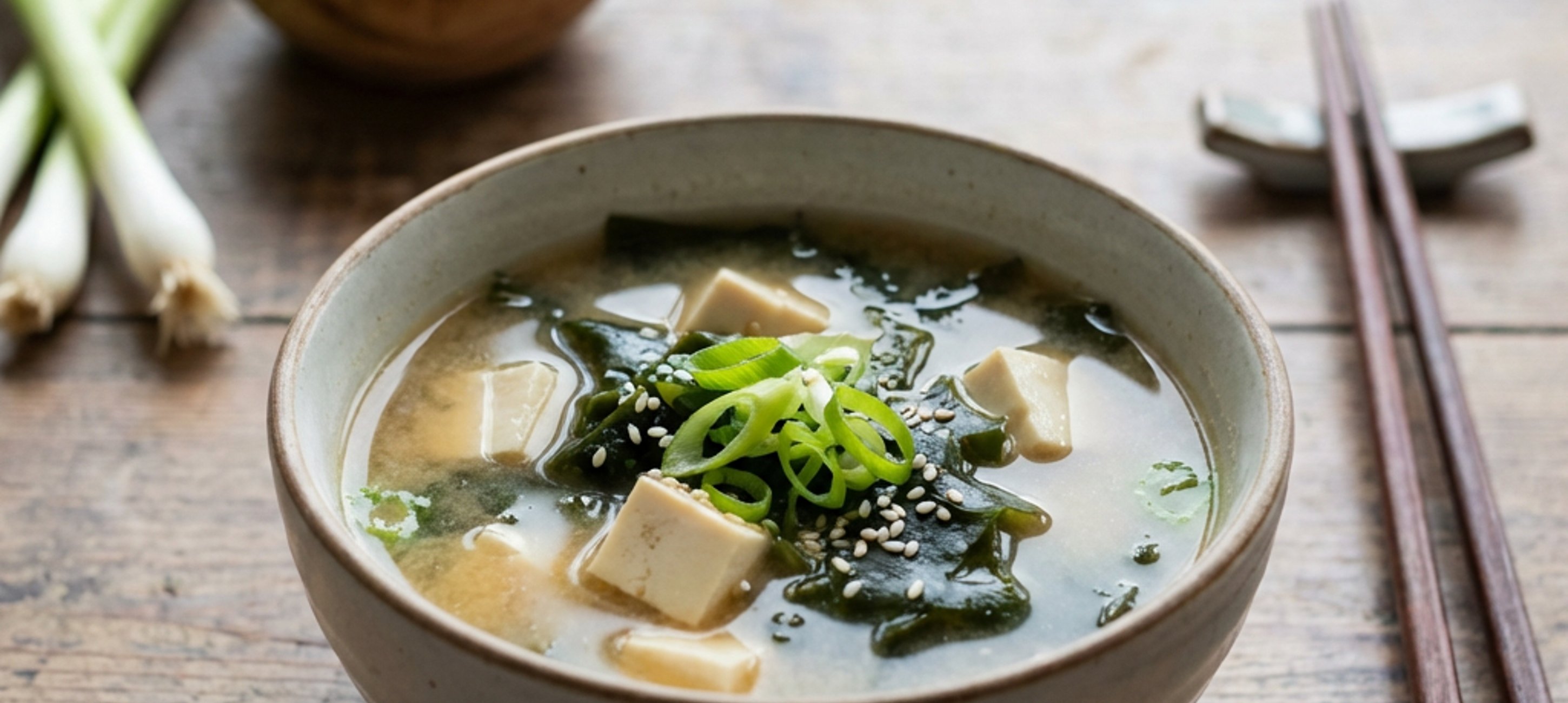 - 1Pour water into a pot and bring it to a boil. Add dried wakame seaweed to the boiling water and let it simmer for another 10 minutes. Meanwhile, cut the tofu into cubes, spring onion into thin slices, and coriander finely.
