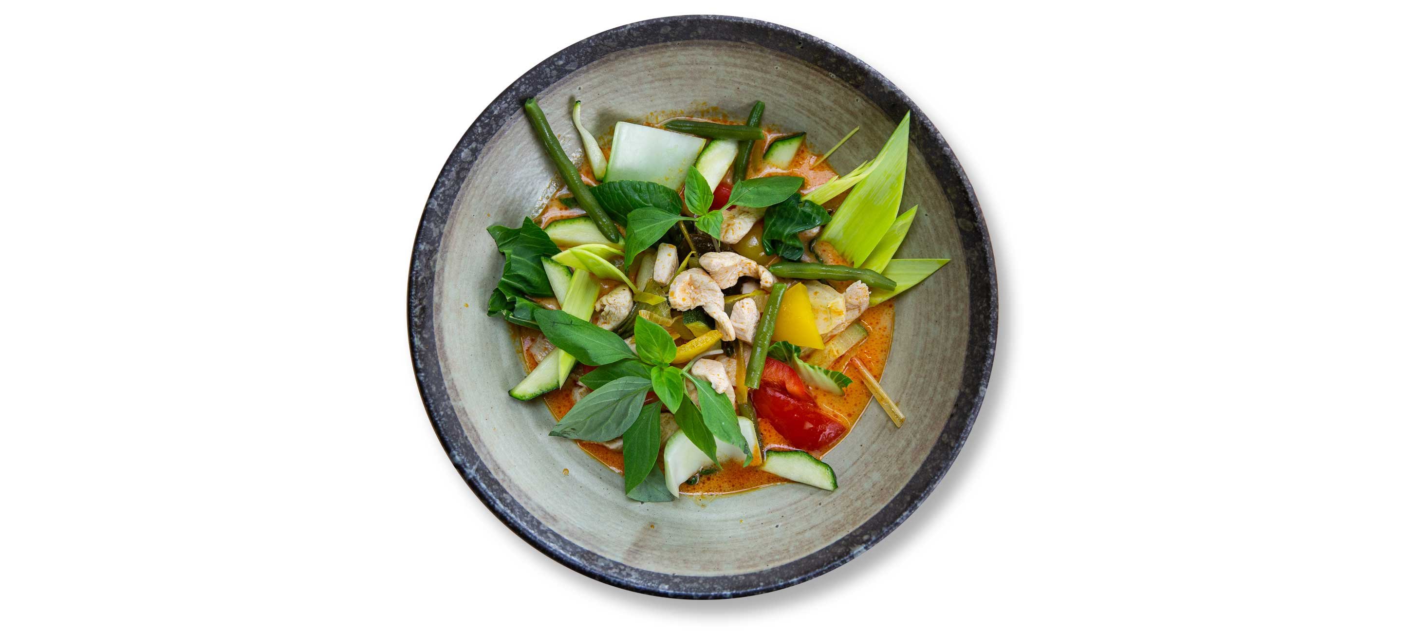 - 2Limetové listy a citronová tráva se nekonzumují, před podáváním je tedy vyjmeme z hrnce. Do hotového kari vmícháme čerstvé bylinky (nekrájíme a nevaříme).