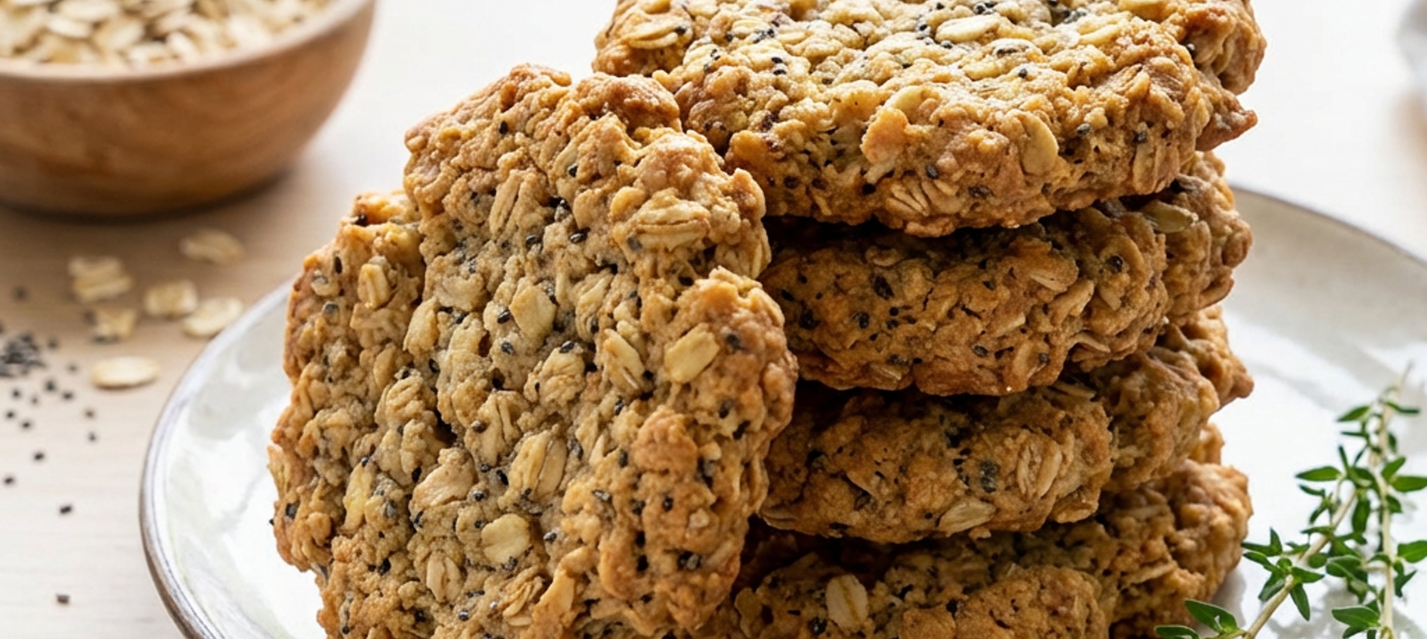 - 3Mix the flour, soda, salt, and thyme together with a whisk, then add the oat flakes and mix briefly again. Combine the soaked seeds with lemon juice and fold into the butter mixture, spoonful by spoonful. Then gently fold in the dry ingredient mixture with a wooden spoon.