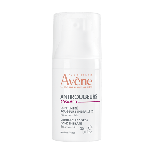 AVENE Antirougeurs ROSAMED Koncentrát proti chronickému zarudnutí je první přípravek pro péči o pleť s dlouhodobým účinkem na příčinu zarudnutí. Péče Antirougeurs ROSAMED, vyvinutá ve spolupráci s dermatology, snižuje výskyt zarudnutí a svým účinkem proti jeho návratu pomáhá omezit jeho opětovný výskyt. Redukuje i trvalé zarudnutí. Okamžitě zklidňuje pocity horka a hydratuje po dobu 24 hodin, aby obnovila příjemný pocit pokožky. Výsledkem více než tříletého výzkumu je účinná látka Angiopausine z ostropestřce mariánského, která v množství 6 % zmírňuje povrchovou hypervaskularizaci. Hlavní výhody: Aktivní látka 100% přírodního původu. Lehký, nemastný krém. Bez parfemace. Pro citlivou a reaktivní pokožku. Vynikající také jako báze pod make-up. Zmírňuje chronické zarudnutí. Okamžitě zklidňuje. 24hodinová hydratace. Balení obsahuje 30 ml.