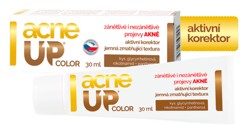 AcneUP COLOR proti akné je dermatologický tónovaný korektor - kryje, koriguje a zároveň zlepšuje stav aknózní pleti. AcneUP COLOR aktivní korektor ihned po aplikaci vylepší vzhled pokožky trpící akné. Díky působení aktivních složek dlouhodobě potlačuje a zklidňuje viditelné projevy problematické pleti (černé/bílé tečky, zarudlé a zanícení pupínky). Unikátní kombinace zklidňujících, hojivých a antimikrobiálních složek v makepovém základu přináší viditelné zlepšení pleti. AcneUP COLOR neucpává póry (je nekomedogenní). Obsahuje aktivní složky niacinamid 4% + ammonium glycyrrhizát (derivát kyseliny glycyrrhetinové), panthenol & bisabolol, arganový olej. AcneUP COLOR lze použít jako korektor na jednotlivé léze, bázi pod oblíbený make-up, místo make-upu na celou plochu obličeje. K dosažení ideálního odstínu je možné smíchat AcneUP COLOR aktivní korektor s menším množstvím klasického make-upu. Pro použití každý den, kdykoliv je potřeba. Balení obsahuje 30 ml.
