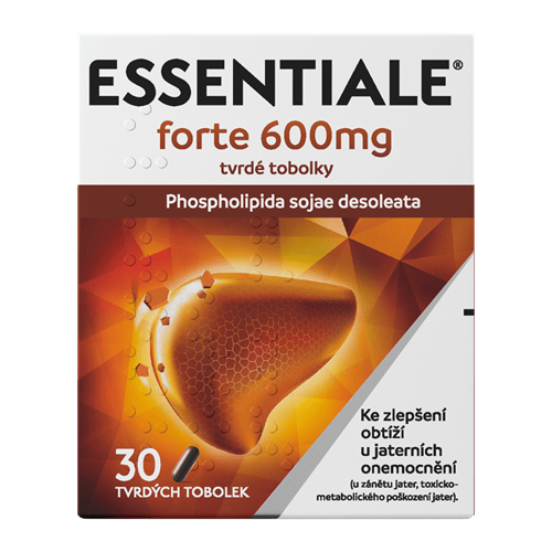 Přípravek Essentiale se podává pro zlepšení subjektivních obtíží u jaterních onemocnění, která jsou způsobena toxicko - metabolickým poškozením jater (poškození jater provázející jaterní onemocnění nebo způsobené léky, alkoholem, chemickými látkami, otravou po požití hub). Toto poškození se může projevovat např. ztrátou chuti k jídlu a/nebo pocitem tlaku v pravém nadbřišku. Při zánětu jater (hepatitidě). Přípravek podporuje následující děje: Normalizaci narušených funkcí a enzymatických aktivit jaterní buňky. Uvolnění energetických zásob v jaterní tkáni. Urychlení a podpora regenerace jaterních buněk. Úpravu rovnováhy krevních tuků. Stabilizaci žluči. Přípravek mohou užívat dospívající od 12 let (o hmotnosti přibližně 43 kg) a dospělí. Balení obsahuje 30 tvrdých tobolek.