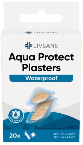 Zdravotnický prostředek. Voděodolné náplasti ke krytí povrchových ran. Ideálně při koupání, sprchování a plavání. Jednotlivě balené. Průhledné. Pružné. Hypoalergenní. Neobsahují latex. Balení obsahuje 20 ks (10 náplastí o rozměru: 38 x 38 mm a 10 náplastí o rozměru: 25 x 72 mm).