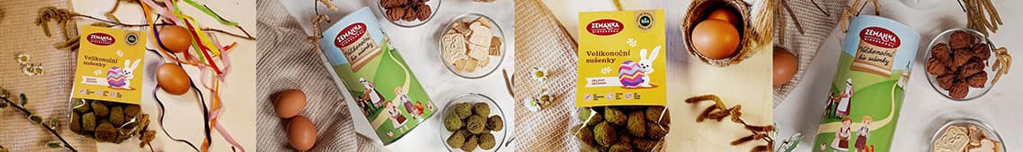 Objevte oblíbené Velikonoční bio sušenky se zeleným ječmenem i dárkový Velikonoční tubus plný sladkých dobrot. Vše z kvalitních bio surovin, bez mléka a vajec, ale s chutí, která vás bude bavit.