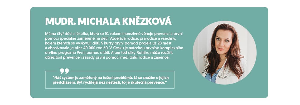 Děti, to je nekonečná láska a radost, ale taky velký strach o to, aby se jim nic nestalo. Jak ho přemoci? Jedině s heslem “vždy připraven/a” a tedy poctivou přípravou na všechny možné lehké i vážné nehody. A protože chceme, aby to platilo i pro vás, v březnovém vydání Rohlíčku pro vás máme přípravu i nabídku k nezaplacení: 14dílný online kurz první pomoci u dětí od MUDr. Michaly Knězkové alias #comamdelat. Běžně stojí 2690 Kč, ale na Rohlíku ho máte za 390 korun - zbytek doplatíme my! Kurz je určitě vhodný nejen pro rodiče, ale i prarodiče, sourozence, chůvy, učitelky, zkrátka všechny, kteří můžou být v pravou chvíli na pravém místě. Akce platí jen v březnu, tak pojďte na to!