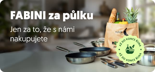 V Rohlíku víme, že to pravé kouzlo domova se rodí v kuchyni. U stolu, nad talířem skvělého jídla. A napadlo nás, že bychom tenhle zážitek mohli posunout o úroveň výš. Proto jsme spojili síly s českou značkou FABINI, která vyrábí nadčasové nádobí z těch nejlepších materiálů a s důrazem na každý detail. Je to parťák, který vaření povýší na radost. Jen u nás si až do konce října můžete vybrat z jejich prémiových kousků s neuvěřitelnou 50% slevou. Ale pozor! Akce je omezena jen do vyprodání zásob, tak ať vám tahle příležitost neuteče.