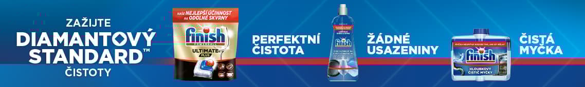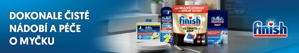 Finish nabízí kompletní řešení pro dokonale čisté nádobí – od kapslí a tablet až po přídavné prostředky.