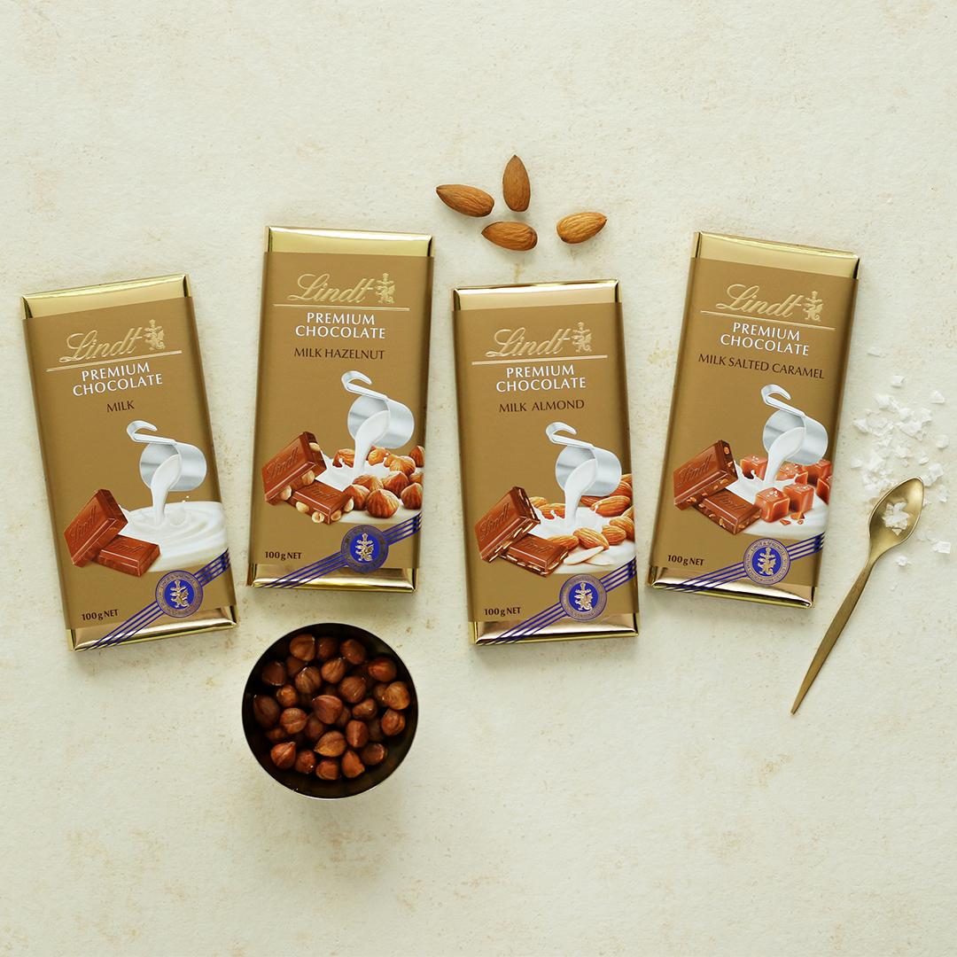 Vyzkoušejte novinky z řady Lindt Premium - mléčné čokolády se sametově jemnou a dokonale vyváženou chutí. Nyní nově v praktickém 100 gramovém balení.