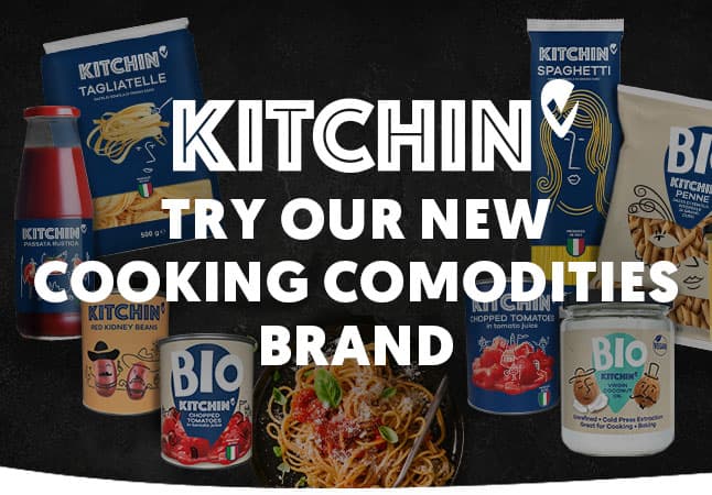 You will find fine selection of essentials for everyday meal preparations. Such as 9 types pf pasta, tomatoes products like Passata rustika or Peeled tomatoes, canned legumes like baked beans, or chickpease. Kichin will also charm you with Cocount oil and Ghee making cooking and baking even more tasty, easy and friendly for your family budget.