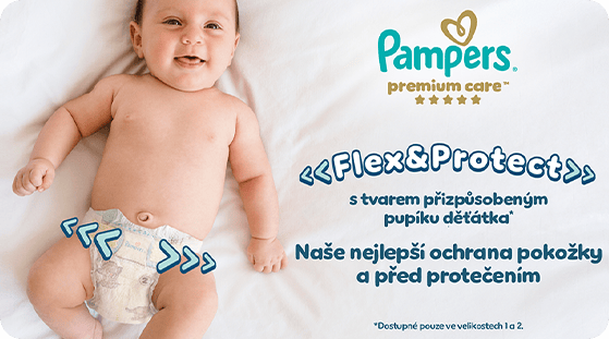 Plenky Pampers Premium Care poskytují dokonalou ochranu pokožky i proti protečení. Pas Flex & Protect
