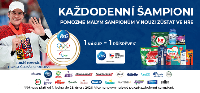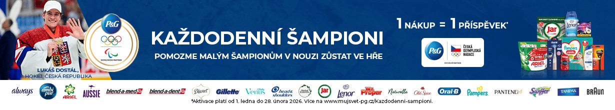 V období od 1. ledna do 28. února 2026 stačí na rohlik.cz nebo v jiném partnerském obchodním řetězci nakoupit jakýkoliv produkt od značek P&G. Z vašeho nákupu se automaticky věnuje finanční příspěvek České olympijské nadaci, která jej předá dětem, které by si sport jinak nemohly dovolit.