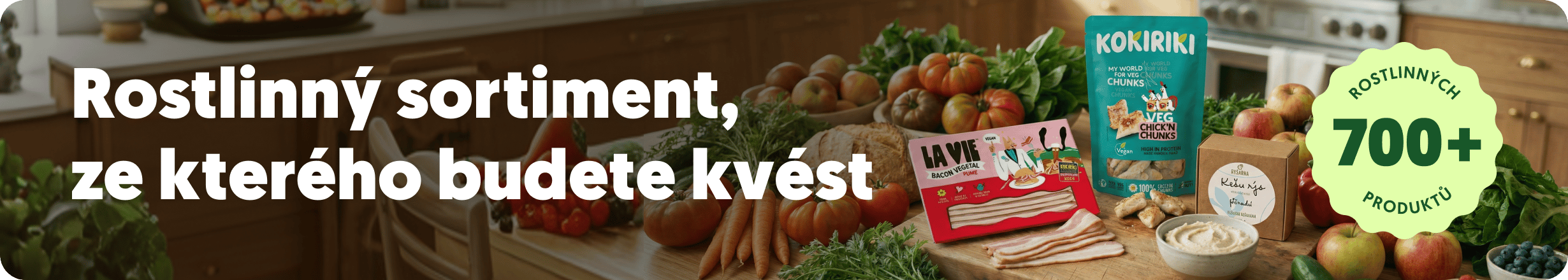 Tofu a tempeh znáte jako vlastní boty. Ale věřte nám, tím to u nás teprve začíná. Máme rostlinné ryby, co chutnají po moři, aniž by kdy viděly loď. Rádoby maso, u kterého budete nevěřícně kontrolovat složení, jestli je to fakt vege. Uzeniny, po kterých se budete olizovat až za ušima. A hotovky, které zachrání každý den, kdy kvetete z toho, co zase budete vařit.
