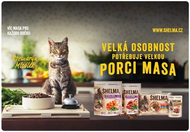 Kocourek Rozmarýn Mlsálek je kulinářská star, která dobře ví, že maso nejde nahradit. Kvalitní granule musí obsahovat především živočišné bílkoviny, ze kterých kočky získávají ty nejdůležitější živiny. V granulích Shelma je maso ve složení vždy na první místě, základem je navíc čerstvé maso, které nikdy neprošlo zmrazením, v tom jsou granule Shelma výjimečné!