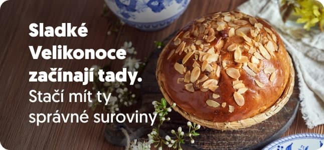 Velikonoce bez pečení? To bychom si pěkně zavařili. Ať už se chystáte na nadýchaného beránka, křupavý mazanec nebo voňavé velikonoční cukroví, máme všechno, co potřebujete. Máslo, mouku, vejce i vanilku. A všechno doručíme rychleji, než stihnete vykynout těsto. Tak si vyhrňte rukávy a hurá do pečení, protože domácí dobroty jsou ty nejlepší.